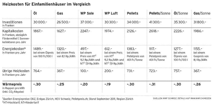 Der aktuelle Heizölpreis von rund 100 Franken pro 100 Liter lässt sogar eine Amortisation innert absehbarer Frist zu: Nach fünf Jahren sind zum Beispiel die hohen Investitionskosten einer Luftwärmepumpe zurückbezahlt. Verglichen mit dem Betrieb eines halb so teuren Gasbrenners, hat sich die Installation von Erdsonden oder einer Holzfeuerung spätestens nach 15 Jahren finanziell gelohnt.
