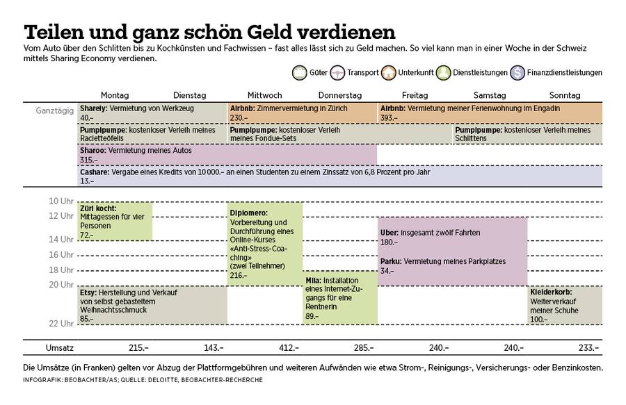 Meiers Zweitjob als Uber-Pop-Fahrer hat wenig zu tun mit der schönen Idee der Sharing Economy vom Tauschen und Teilen. Mit einem Mix aus Ethik und Kommerz hebt die Sharing Economy traditionelle Geschäftsmodelle aus den Angeln. Der Fahrdienstvermittler Uber wirbelt das Taxigewerbe durcheinander. Die Beherbergungsplattform Airbnb tut es mit der Hotellerie. Und mehrere Finanz-Start-ups möchten den Banken das Kreditgeschäft streitig machen. Etwas haben sie alle gemein: Sie bringen über Websites und Apps Angebot und Nachfrage zusammen. Jeder kann sich mit seinem Auto, seiner Wohnung und seinem Geld beteiligen. Der Kunde zahlt, der Anbieter verdient, die Plattform kassiert Gebühren. Es ist der Beginn einer neuen Wirtschaftsordnung, des «Plattform-Kapitalismus».