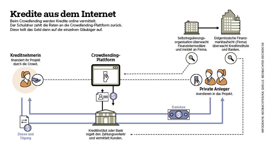 Entscheidend für den Erfolg einer Crowdlending-Plattform ist, wie treffend sie die Kreditwürdigkeit der Schuldner einschätzt. Dafür zapfen die Plattformen dieselben kostenpflichtigen Wirtschaftsauskunfteien an wie Banken. «Wir ergänzen diese Informationen dann durch automatisierte Recherchen, auch in sozialen Netzwerken», sagt Michael Borter von Crowdlending. Kreditsuchenden wird nahegelegt, ihr Profil aus der Karriereplattform Linkedin in die Plattform einzuspeisen.