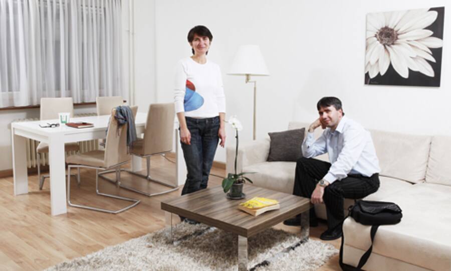 Doch die beiden sind bloss Arbeitskollegen, Applikationsentwickler aus Transsilvanien, Rumänien. Sie arbeiten für vier Monate zusammen an einem Projekt in Zürich. Mit dem Teamkollegen unter einem Dach, kann man da überhaupt abschalten? Die beiden sehen es pragmatisch: «Ich bin nicht hier, um mich zu entspannen. Es ist Arbeit. Fertig», sagt sie. Und er nickt: «Urlaub machen wir später.»