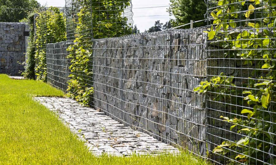 Zu einem naturnahen Garten passen Trockensteinmauern sehr gut. Die etwas günstigere Variante sind Steingabionen. Auch Granitstelen eignen sich. Steinkörbe und -stelen wirken weniger starr, wenn sie mit Pflanzen, beispielsweise schlank wachsenden Sträuchern, kombiniert werden.