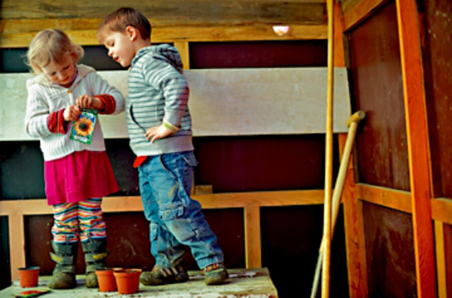 Heute Nachmittag steht Gärtnern auf dem Programm. Auf einem alten Gartentisch stehen Gänseblümchen und Duftveilchen zum Eintopfen bereit. Jeanne Rose und Janis puhlen die Jungpflanzen aus den Plastiktöpfen, zupfen an den Wurzeln. «Die riechen nach Gaggi», sagt Jeanne Rose. «Nach Tannennadeln», versucht sich Janis. «Quatsch», sagt sein grosser Bruder Nils, «die riechen einfach nach Blumen!» Dann lässt er die Kleinen weiter herumalbern und macht sich an das Pflanzen von Kartoffeln. Die Knolle bietet sich für kleine Gärtner geradezu an. Sie ist pflegeleicht, lässt sich sogar in Eimern auf dem Balkon ziehen – und in der Küche zu feinen Pommes frites oder Rösti verarbeiten. Eigenes Gemüse zu ernten ist für Kinder immer ein Erfolgserlebnis; eine sinnliche Erfahrung, die ihnen zeigt, woher das Essen kommt, und die sie Zusammenhänge begreifen lässt.